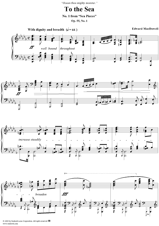 Digital Sheet Music for Sea Pieces, op. 55, No. 1 by Edward MacDowell scored for Piano Solo; id:264787
