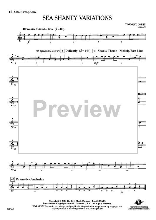 Digital Sheet Music for Sea Shanty Varitions - Eb Alto Sax by Timothy Loest scored for Concert Band; id:439307