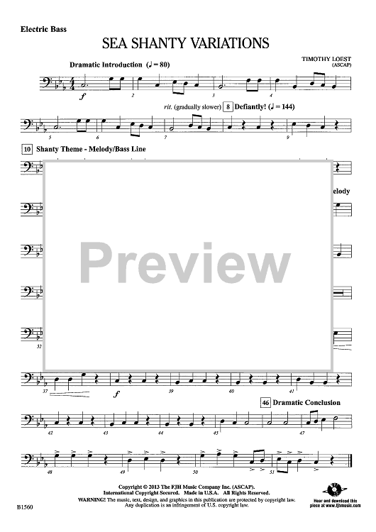 Digital Sheet Music for Sea Shanty Varitions - Electric Bass by Timothy Loest scored for Concert Band; id:439316