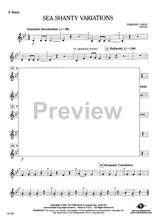 Digital Sheet Music for Sea Shanty Varitions - F Horn by Timothy Loest scored for Concert Band; id:439311