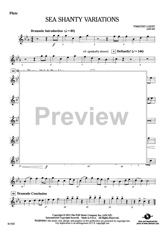 Digital Sheet Music for Sea Shanty Varitions - Flute by Timothy Loest scored for Concert Band; id:439301