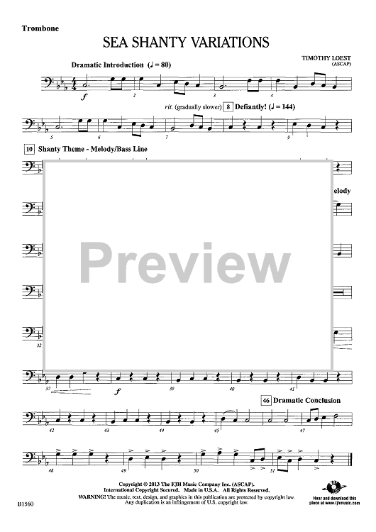 Digital Sheet Music for Sea Shanty Varitions - Trombone by Timothy Loest scored for Concert Band; id:439312