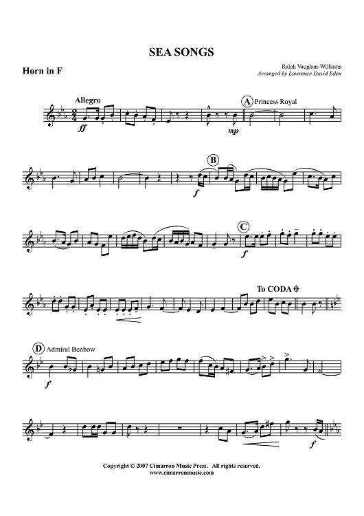 "Sea Songs - Horn in F" Sheet Music by Ralph Vaughan Williams