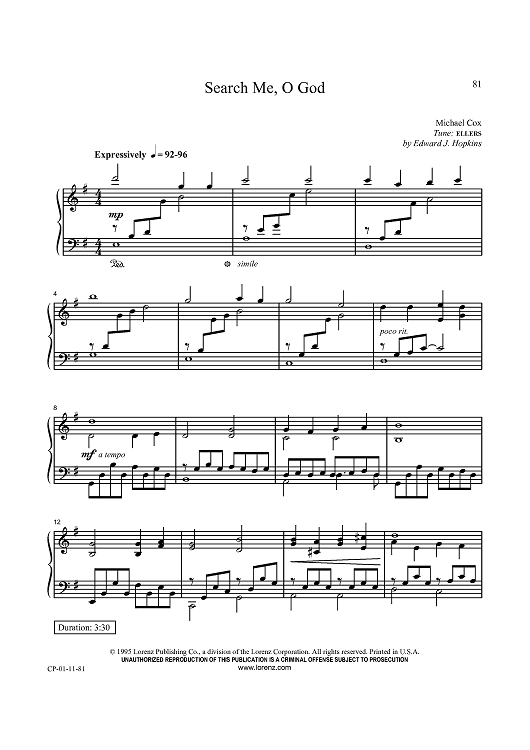 "Search Me, O God" Sheet Music by Edward J. Hopkins