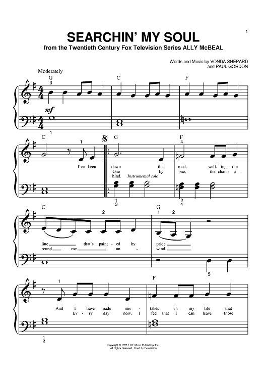 Digital Sheet Music for Searchin' My Soul by Vonda Shepard, Paul Gordon scored for Big Note Piano; id:389721
