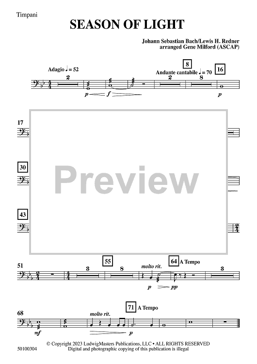 Digital Sheet Music for Season of Light - Timpani by Lewis H. Redner, Johann Sebastian Bach, Gene Milford scored for Concert Band; id:509192