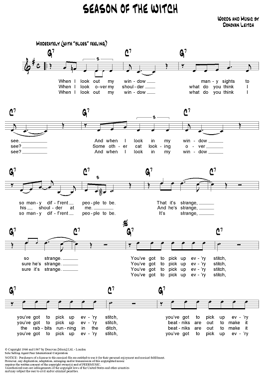 Digital Sheet Music for Season of the Witch by Donovan Leitch, Donovan scored for Lead Sheet; id:361796
