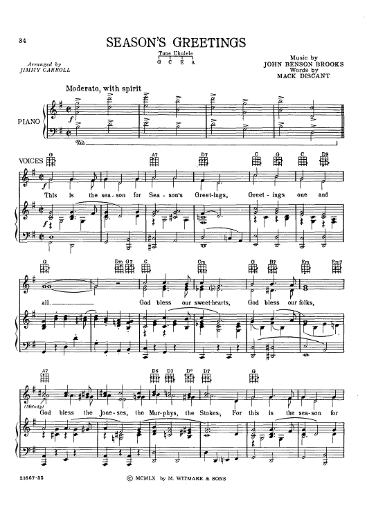 Digital Sheet Music for Season's Greetings by Mack Discant, Mitch Miller, Jimmy Carroll, John Benson Brooks scored for Piano/Vocal/Chords; id:423252