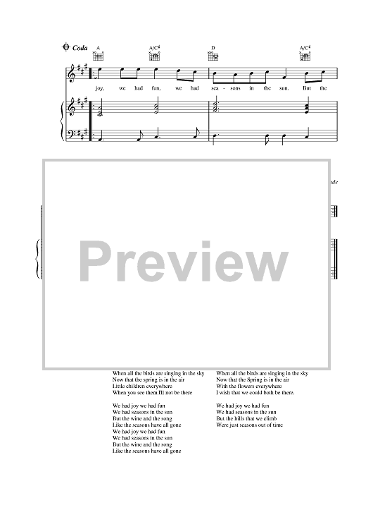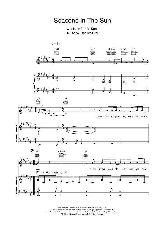 Digital Sheet Music for Seasons In The Sun by Westlife, BREL, MCKUEN scored for Piano/Vocal/Chords; id:380244