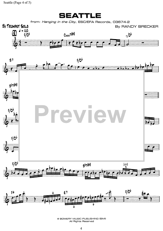 Digital Sheet Music for Seattle by Randy Brecker scored for Bb Trumpet/Piano; id:501993