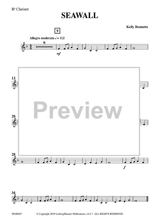 "Seawall - Bb Clarinet" Sheet Music by Kelly Bennette