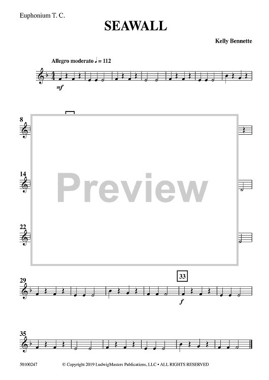 "Seawall - Euphonium TC" Sheet Music by Kelly Bennette