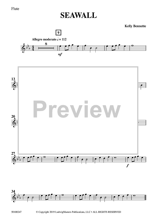 "Seawall - Flute" Sheet Music by Kelly Bennette