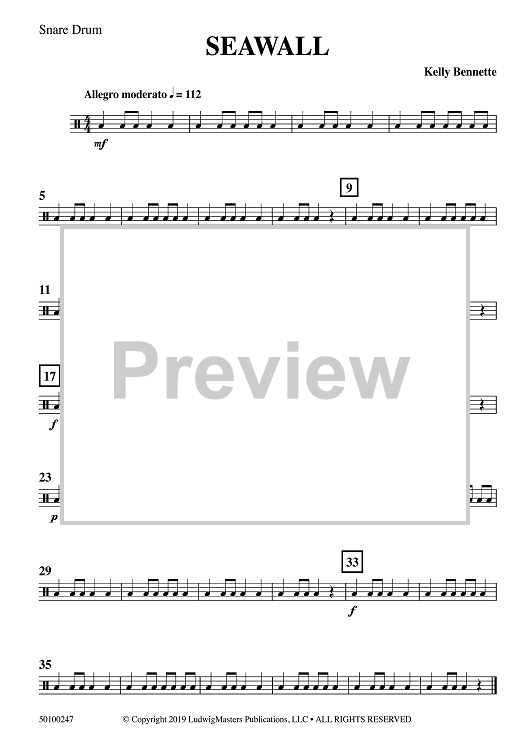 "Seawall - Snare Drum" Sheet Music by Kelly Bennette