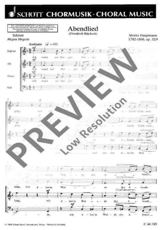 Digital Sheet Music for Sechs Chorlieder - Choral Score by Moritz Hauptmann scored for Mixed Choir (satb); id:471815