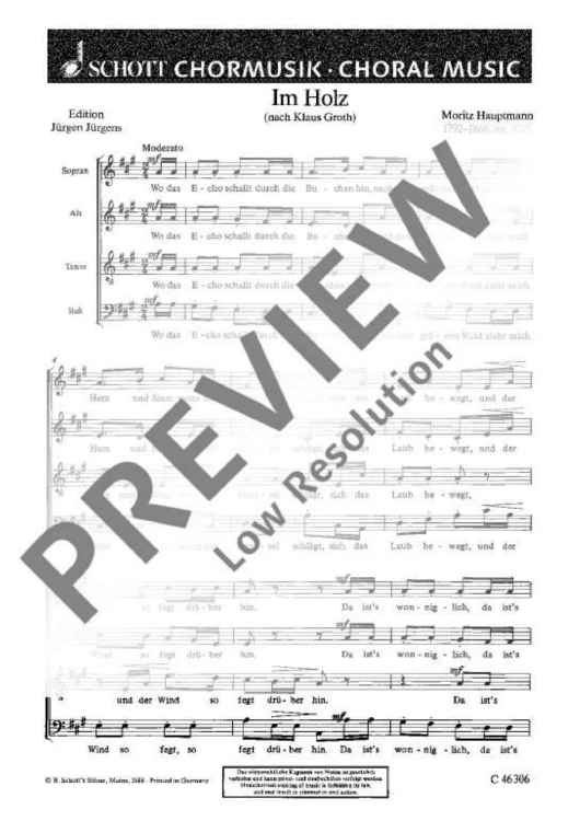 Digital Sheet Music for Sechs Chorlieder - Choral Score by Moritz Hauptmann scored for Mixed Choir (satb); id:479349