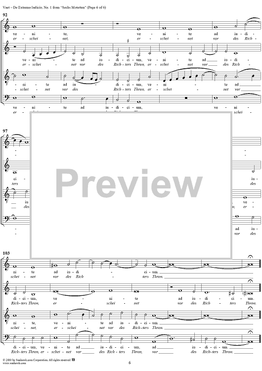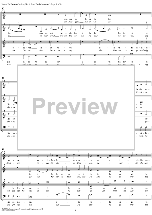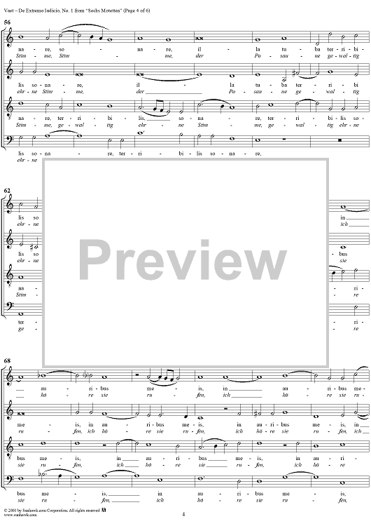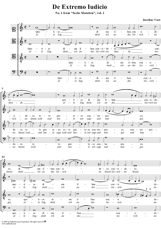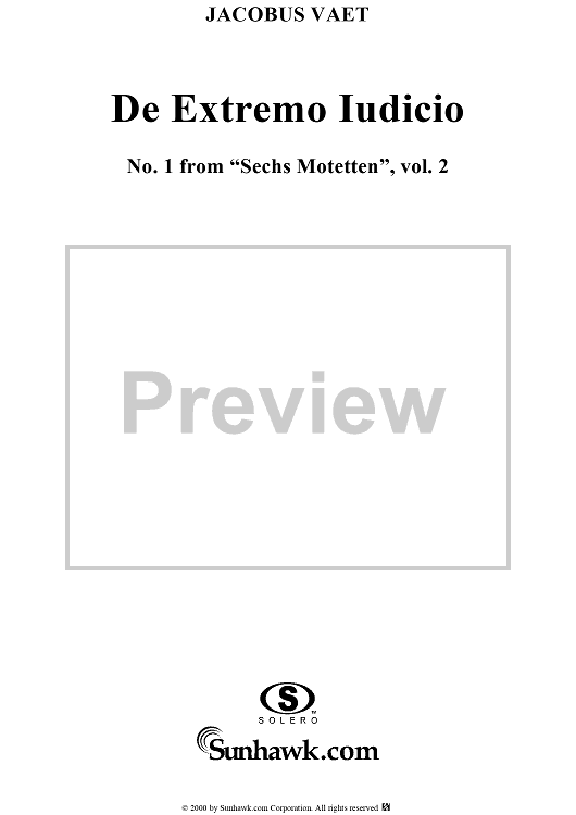 Digital Sheet Music for Sechs Motetten, No. 1: De Extremo Iudicio by Jacobus Vaet scored for Mixed Chorus; id:249571