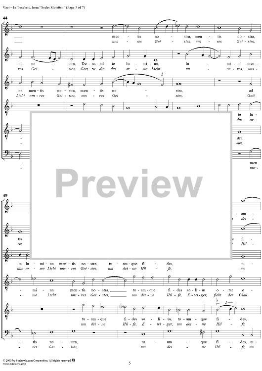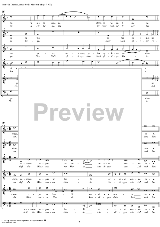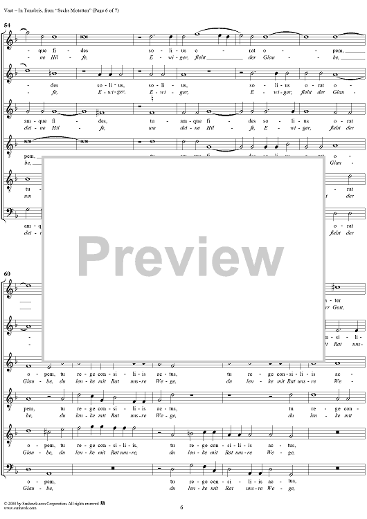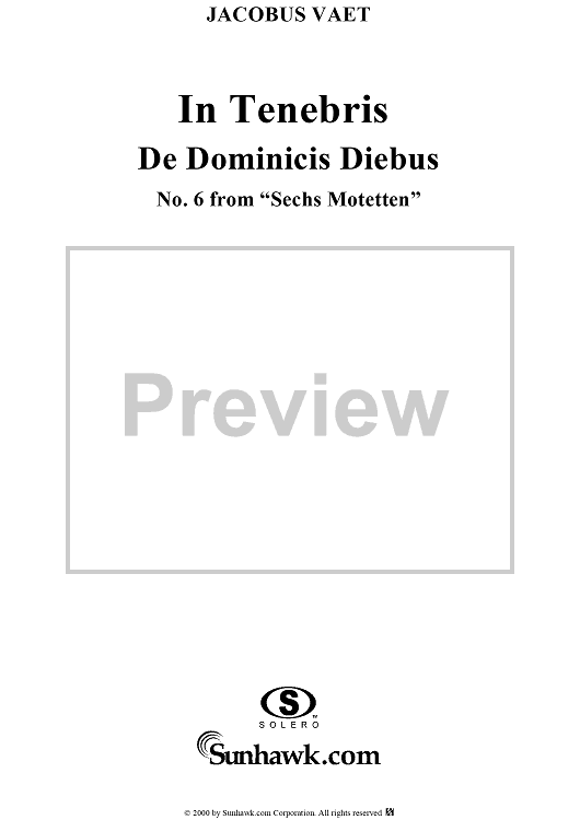 Digital Sheet Music for Sechs Motetten, No. 6: In Tenebris by Jacobus Vaet scored for Mixed Chorus; id:249580