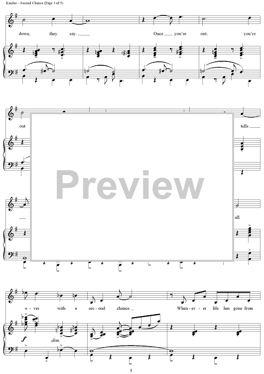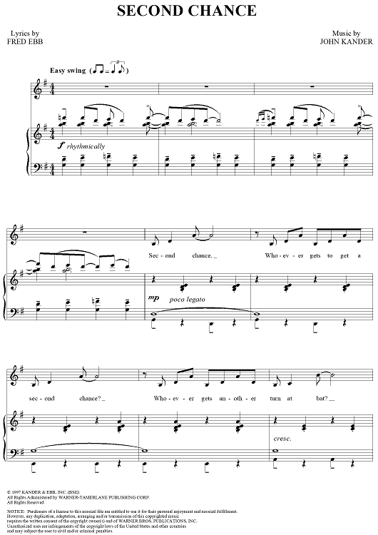 Digital Sheet Music for Second Chance by John Kander, Fred Ebb scored for Piano/Vocal; id:240899