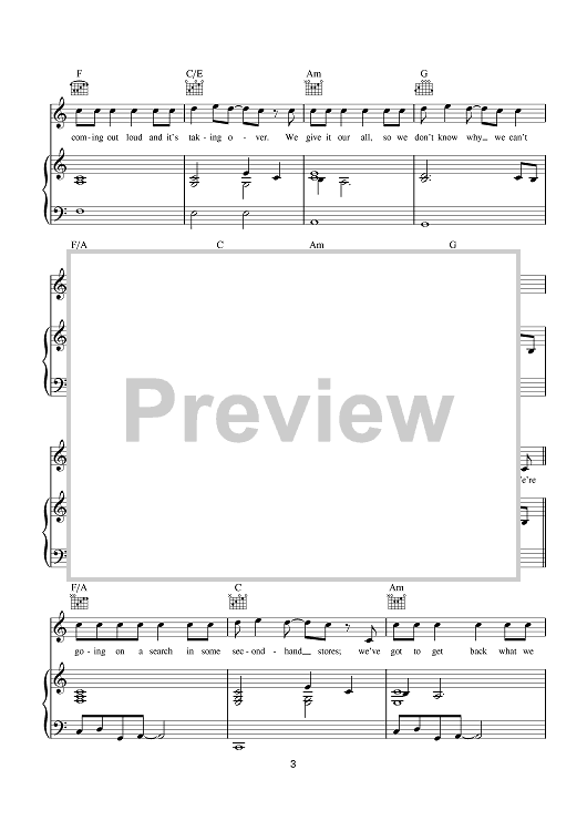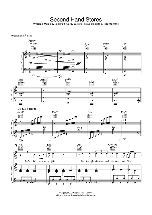 Digital Sheet Music for Second Hand Stores by Athlete, Joel Pott, Steve Roberts, Tim Wanstall, Carey Willetts scored for Piano/Vocal/Chords; id:401642