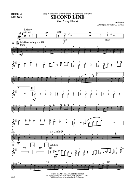 Digital Sheet Music for Second Line (Joe Avery Blues) - Alto Sax 2 by Traditional, Victor L. Goines scored for Jazz Ensemble; id:359814