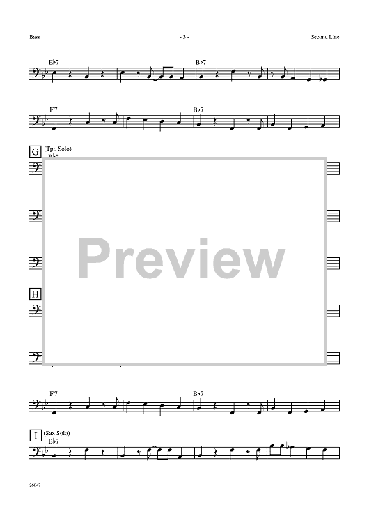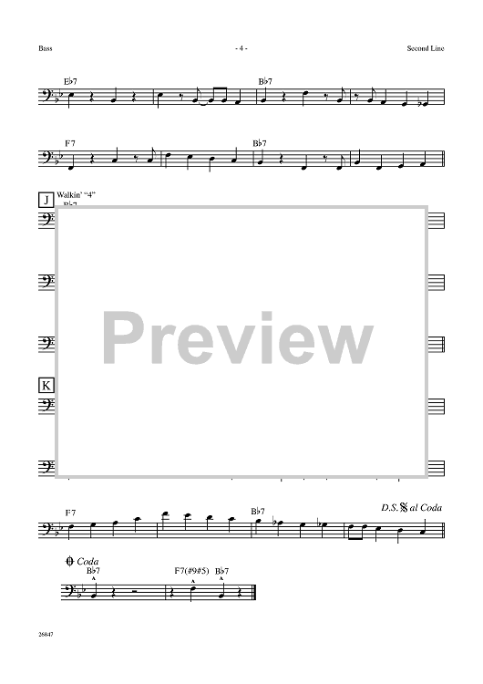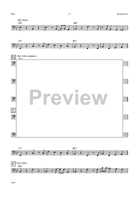 Digital Sheet Music for Second Line (Joe Avery Blues) - Bass by Traditional, Victor L. Goines scored for Jazz Ensemble; id:359829