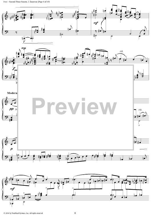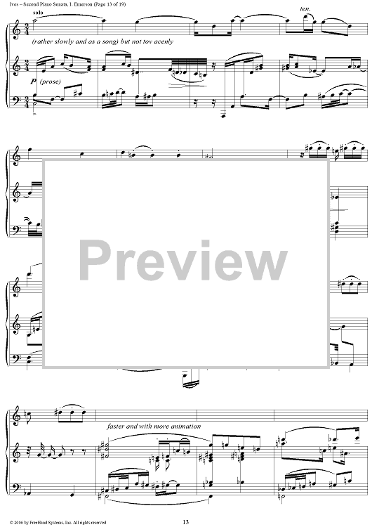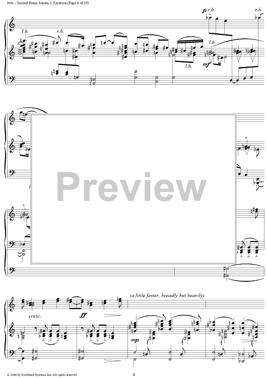 Digital Sheet Music for Second Piano Sonata: i. Emerson by Charles Ives scored for Piano Solo; id:265727
