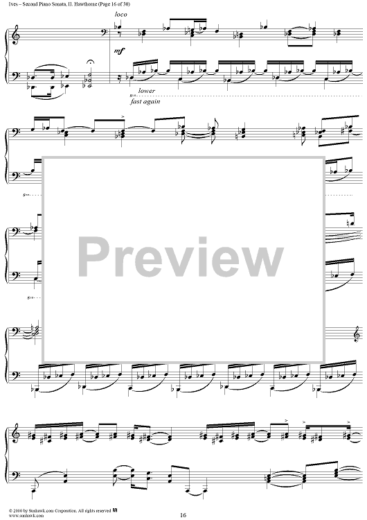 Digital Sheet Music for Second Piano Sonata: ii. Hawthorne by Charles Ives scored for Piano Solo; id:241916