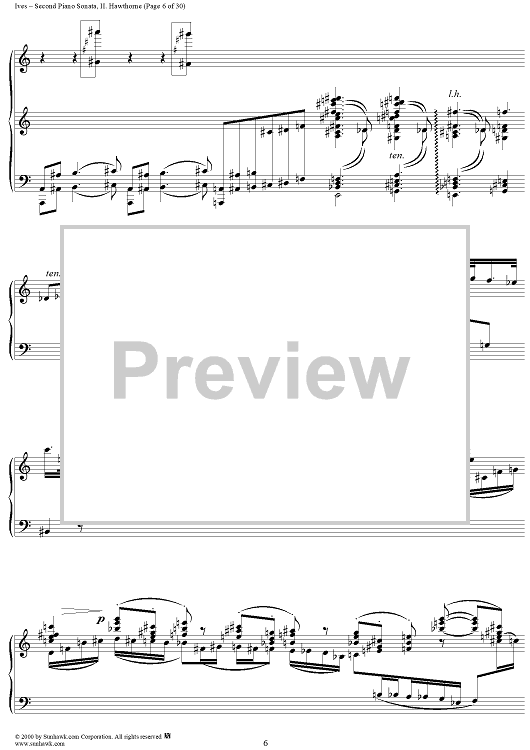 "Second Piano Sonata: ii. Hawthorne" Sheet Music by Charles Ives