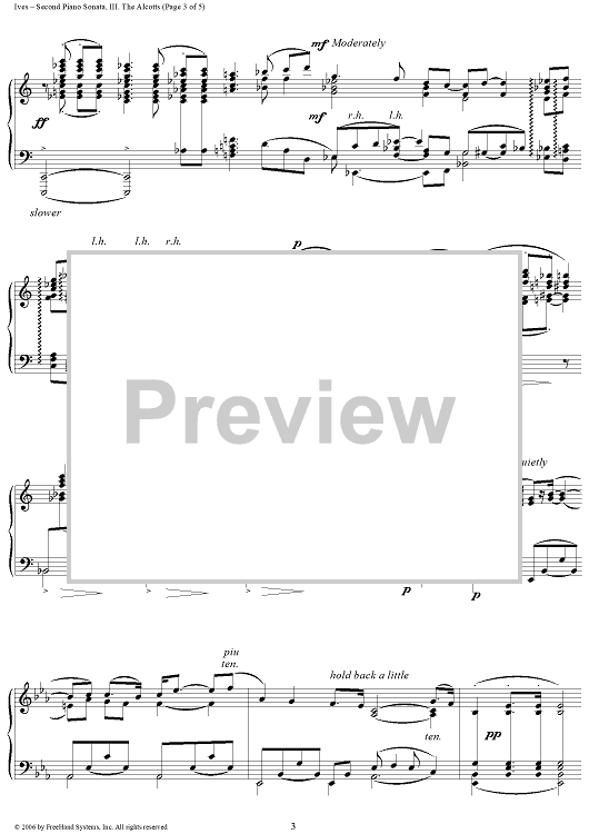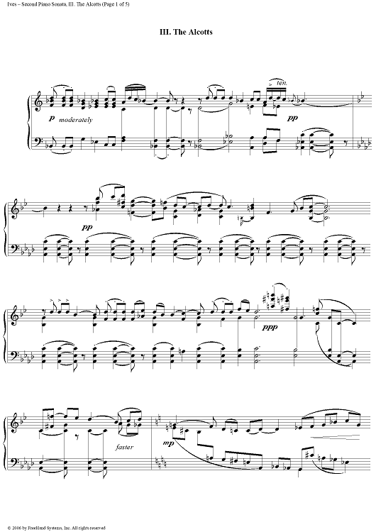 Digital Sheet Music for Second Piano Sonata: iii. The Alcotts by Charles Ives scored for Piano Solo; id:241917