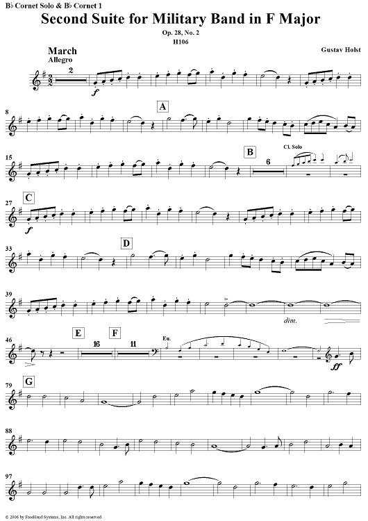 "Second Suite in F - B-flat Cornet 1" Sheet Music by Gustav Holst