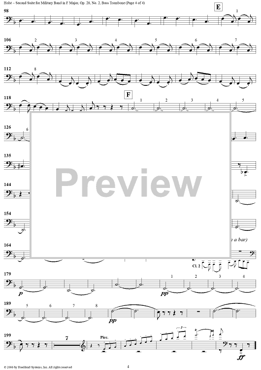 Digital Sheet Music for Second Suite in F - Bass Trombone by Gustav Holst scored for Concert Band; id:311156