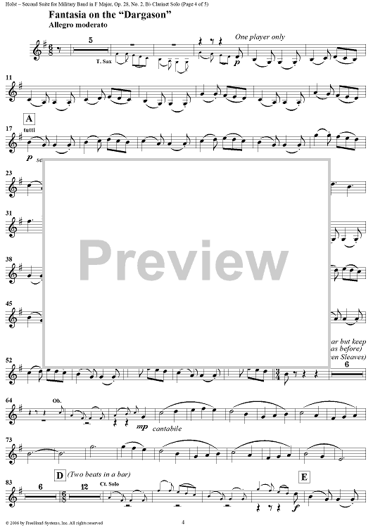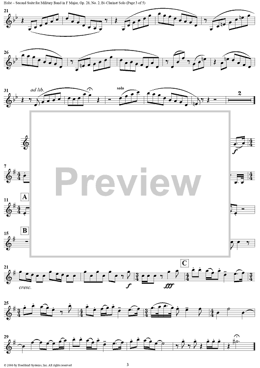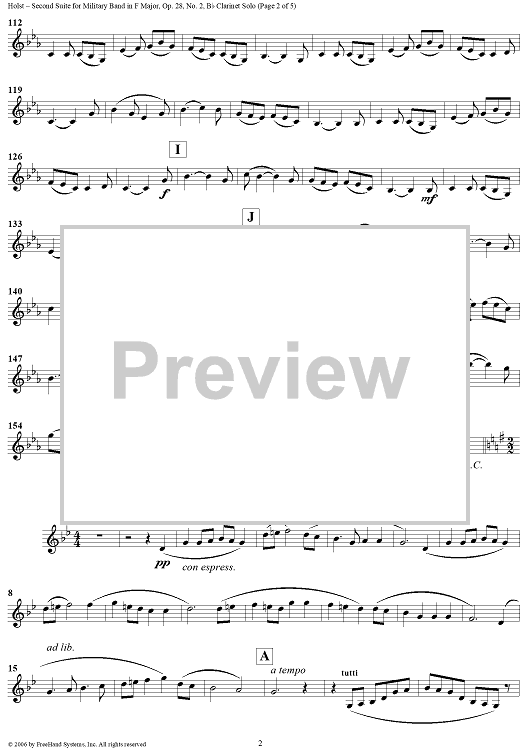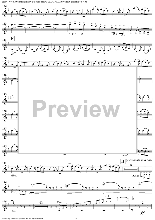Digital Sheet Music for Second Suite in F - Clarinet in B-flat by Gustav Holst scored for Concert Band; id:311141