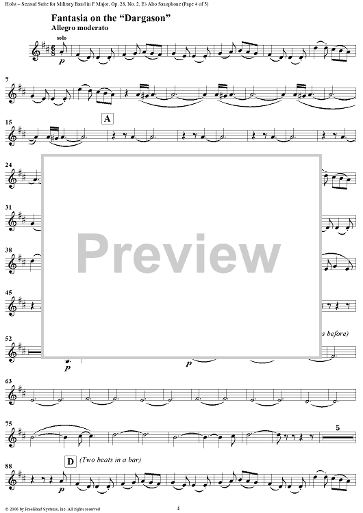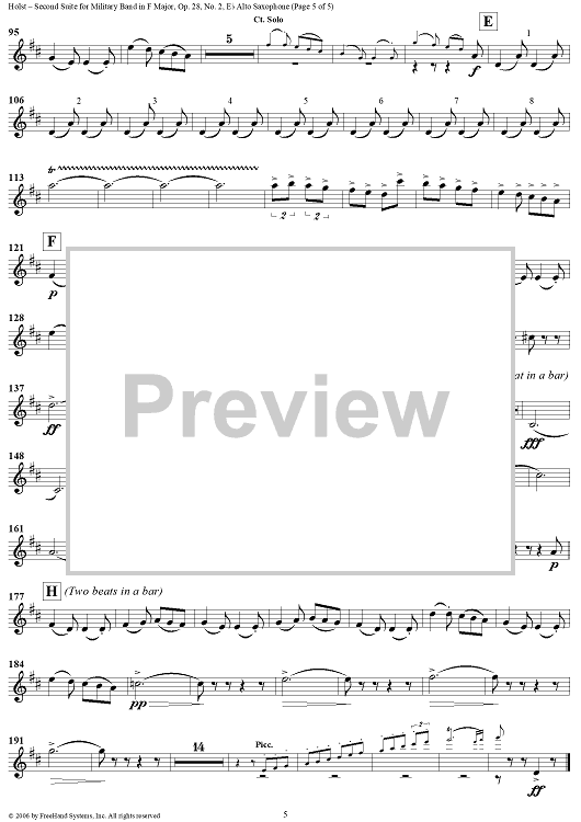 Digital Sheet Music for Second Suite in F - E-flat Alto Saxophone by Gustav Holst scored for Concert Band; id:311146