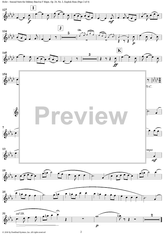 "Second Suite in F - English Horn" Sheet Music by Gustav Holst