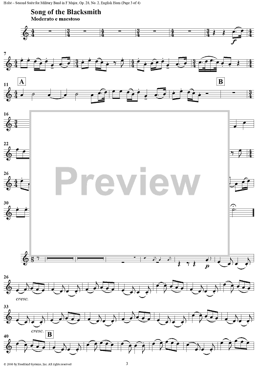 Digital Sheet Music for Second Suite in F - English Horn by Gustav Holst scored for Concert Band; id:311137