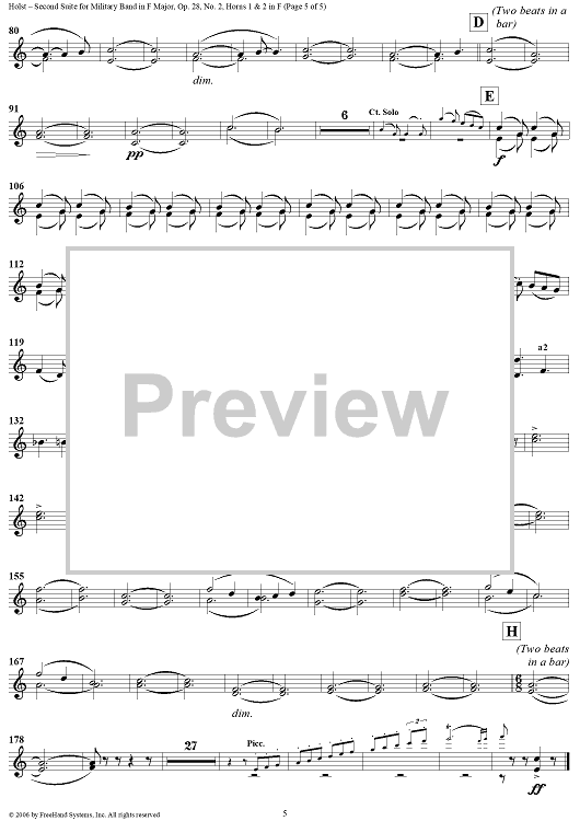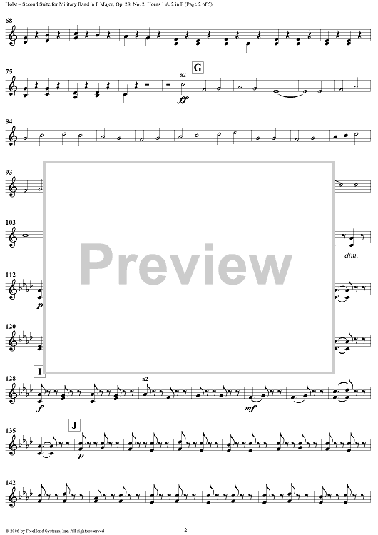 Digital Sheet Music for Second Suite in F - Horns 1 & 2 by Gustav Holst scored for Concert Band; id:311149