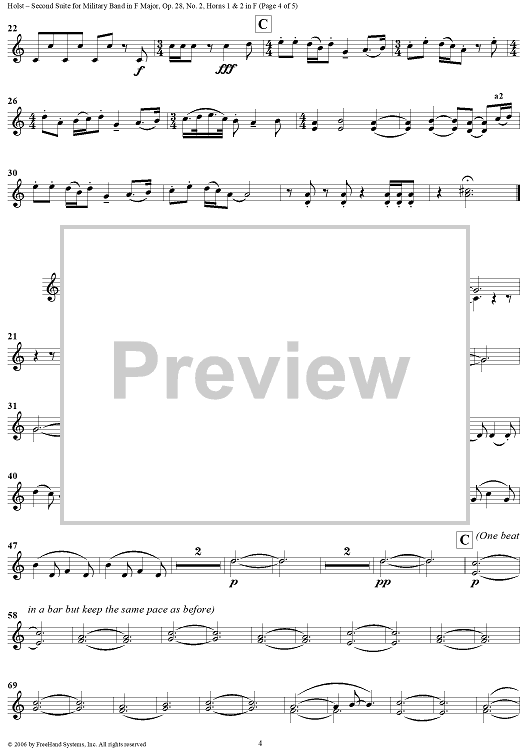 "Second Suite in F - Horns 1 & 2" Sheet Music by Gustav Holst