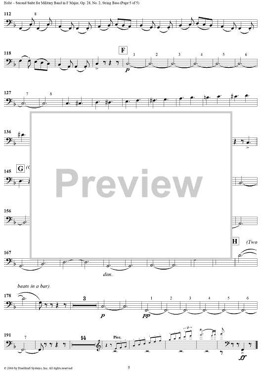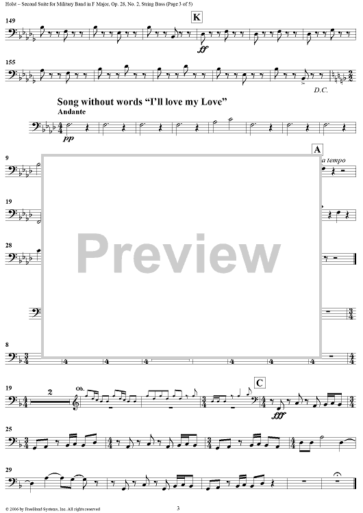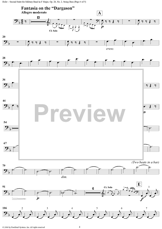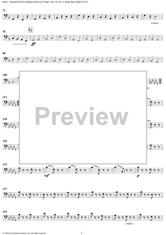 Digital Sheet Music for Second Suite in F - String Bass by Gustav Holst scored for Concert Band; id:311160