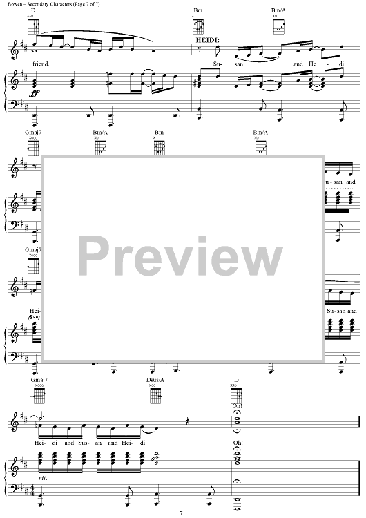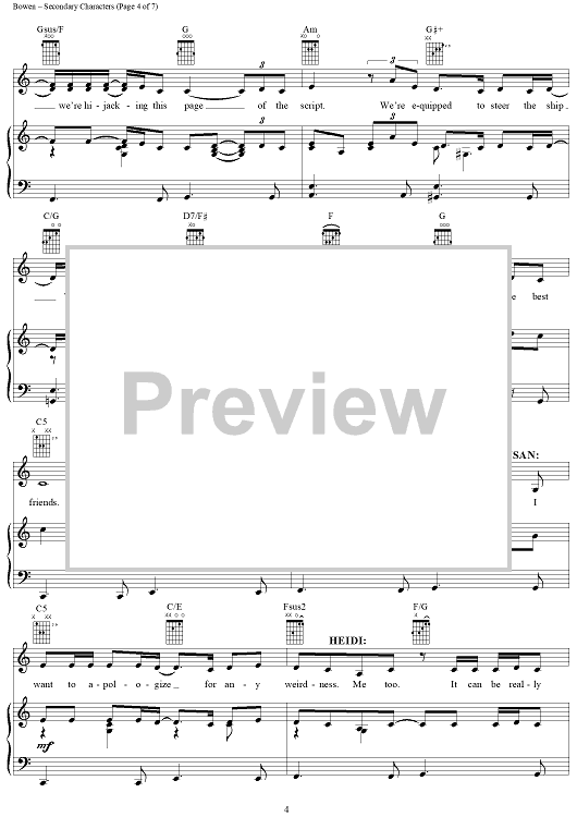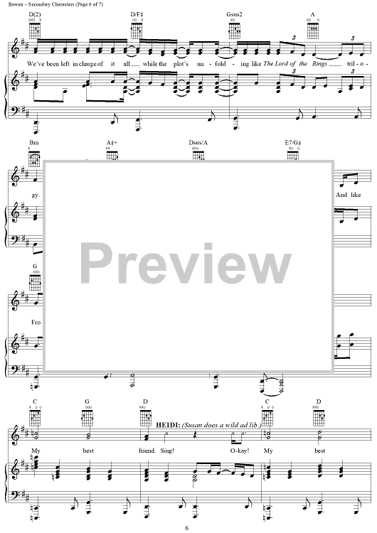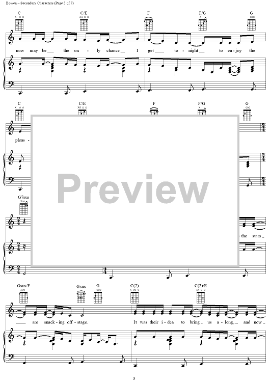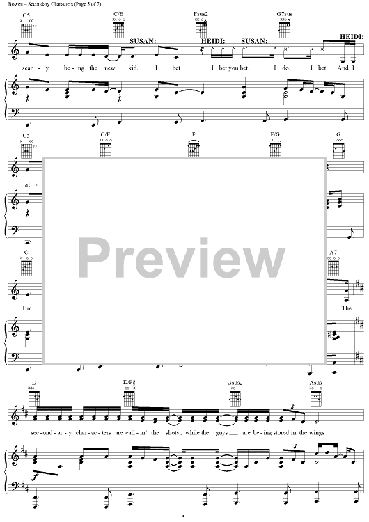 "Secondary Characters" Sheet Music by Jeff Bowen