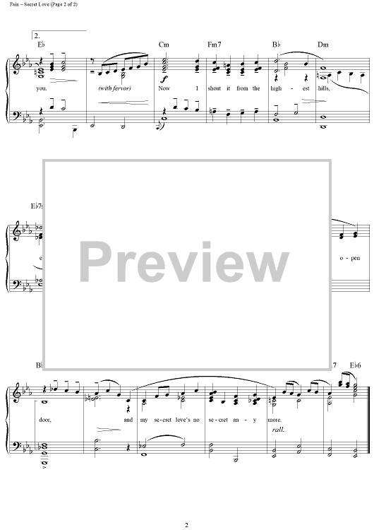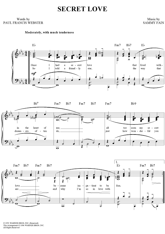 Digital Sheet Music for Secret Love by Sammy Fain, Paul Francis Webster scored for Piano/Vocal/Chords; id:289249