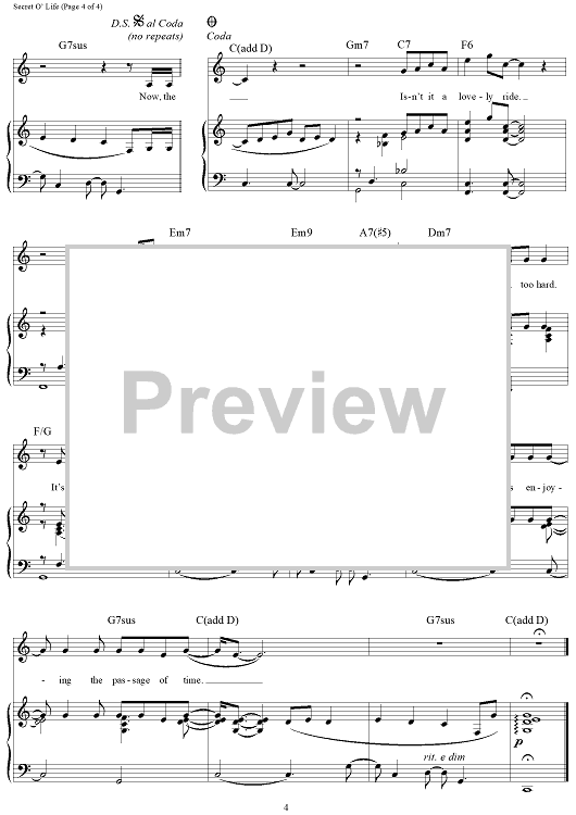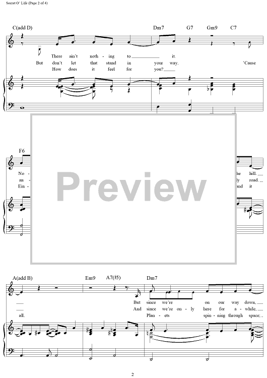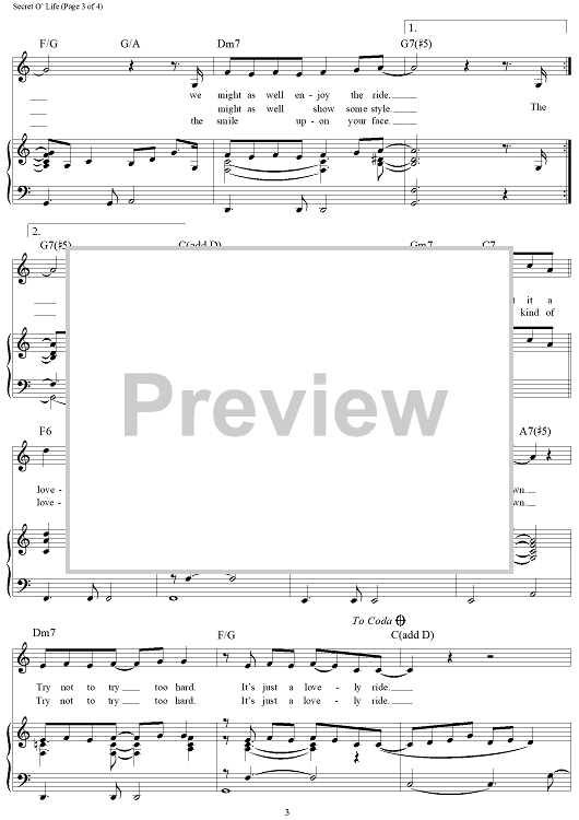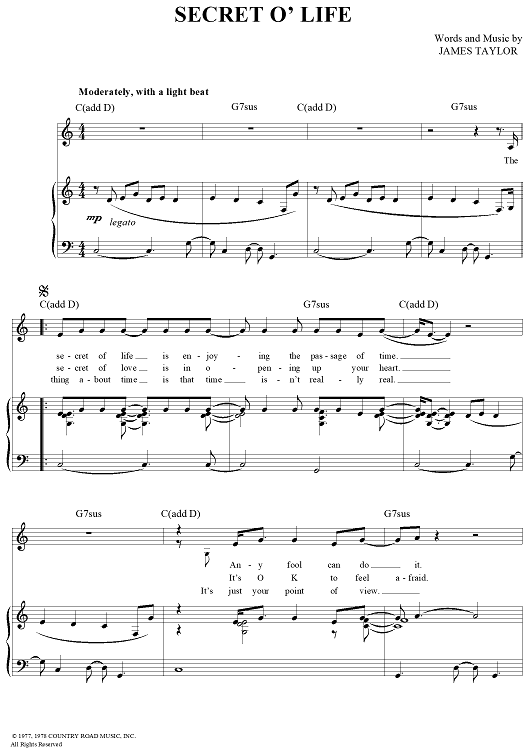 Digital Sheet Music for Secret O' Life by James Taylor scored for Piano/Vocal/Chords; id:111292