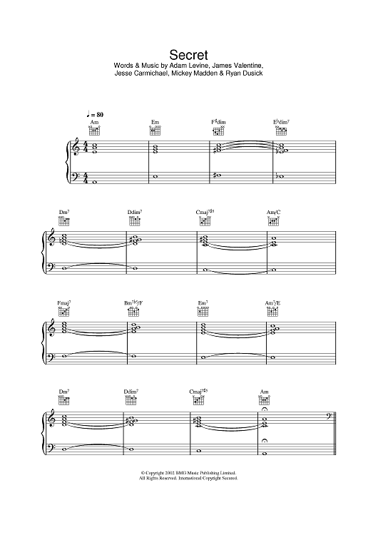 Digital Sheet Music for Secret by Adam Levine, Jesse Carmichael, Maroon 5 scored for Piano/Vocal/Chords; id:378504