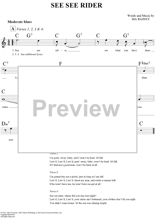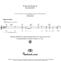 Digital Sheet Music for See See Rider by Ma Rainy scored for Lead Sheet; id:291675