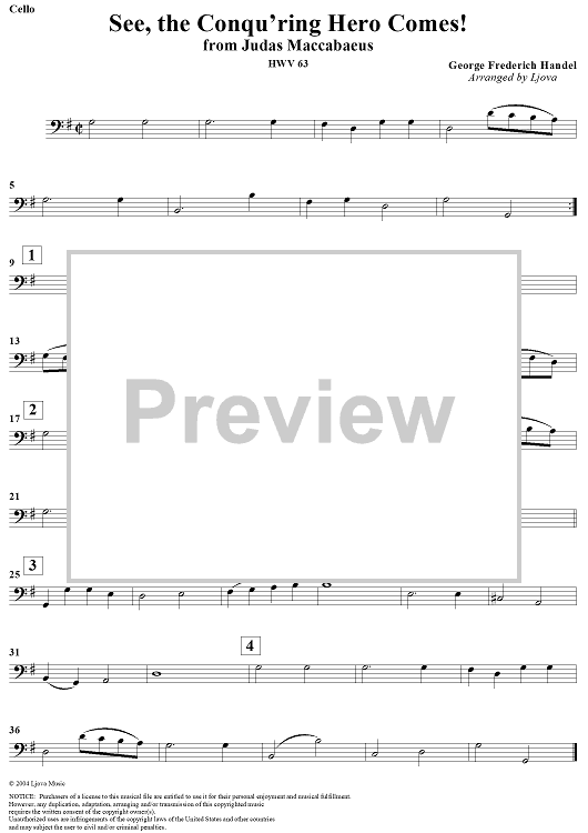 "See, the Conqu'ring Hero Comes! - Cello" Sheet Music by George Frideric Handel