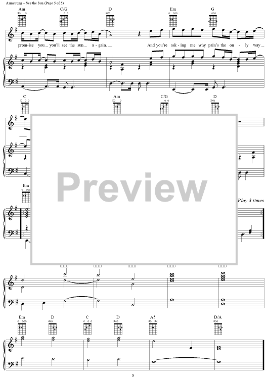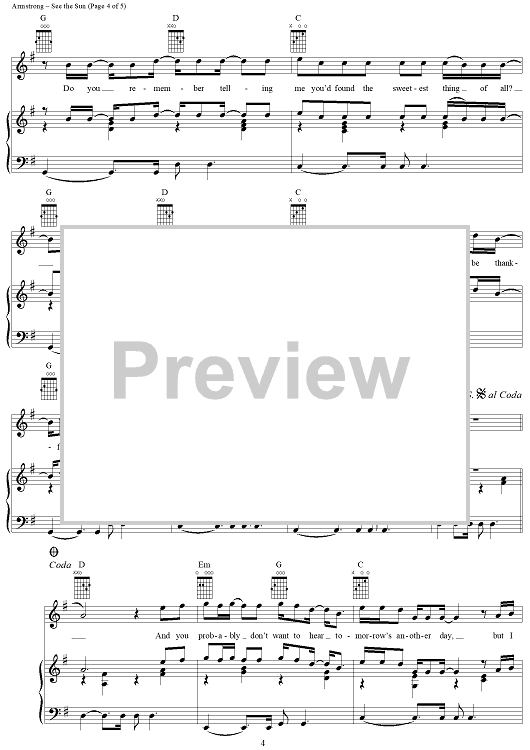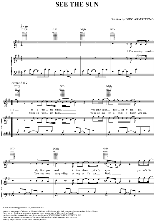 Digital Sheet Music for See the Sun by Dido Armstrong, Dido scored for Piano/Vocal/Chords; id:305323