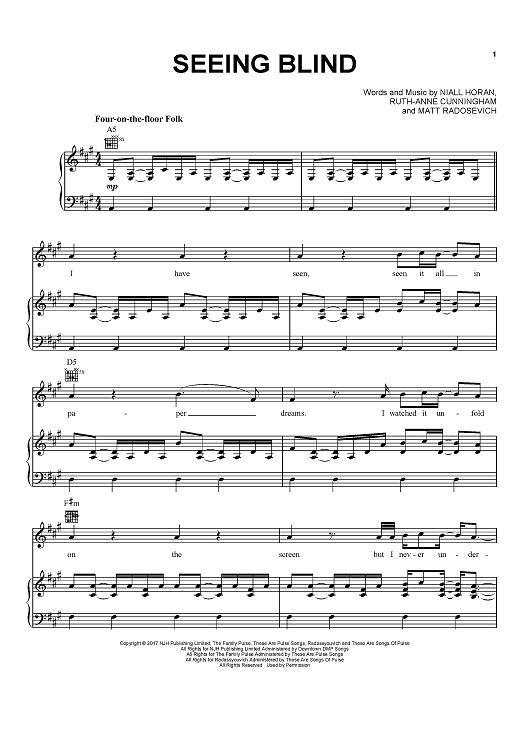 Digital Sheet Music for Seeing Blind by Ruth-Anne Cunningham, Niall Horan, Matt Radosevich scored for Piano/Vocal/Chords; id:465873