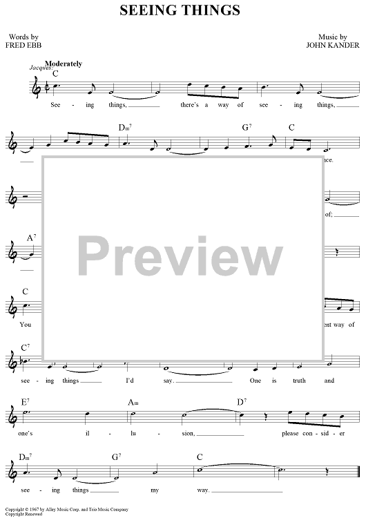 Digital Sheet Music for Seeing Things by John Kander, Fred Ebb scored for Lead Sheet; id:446566