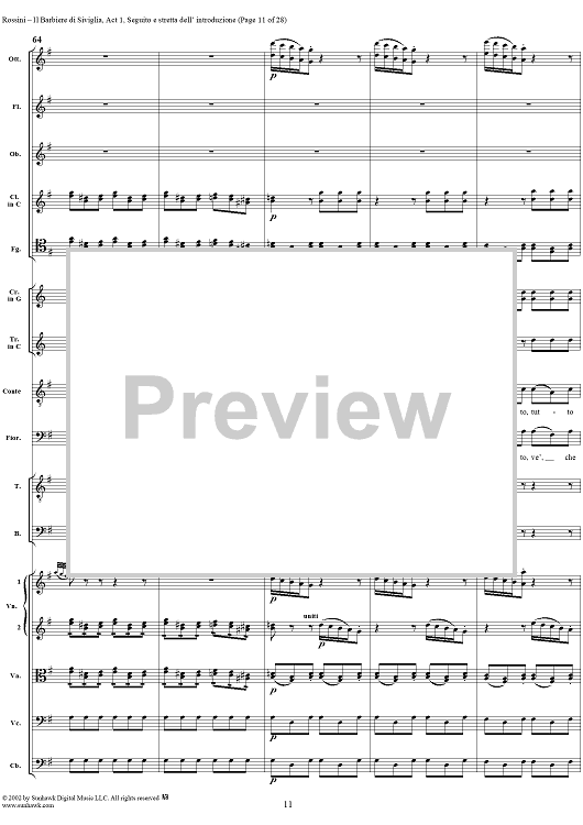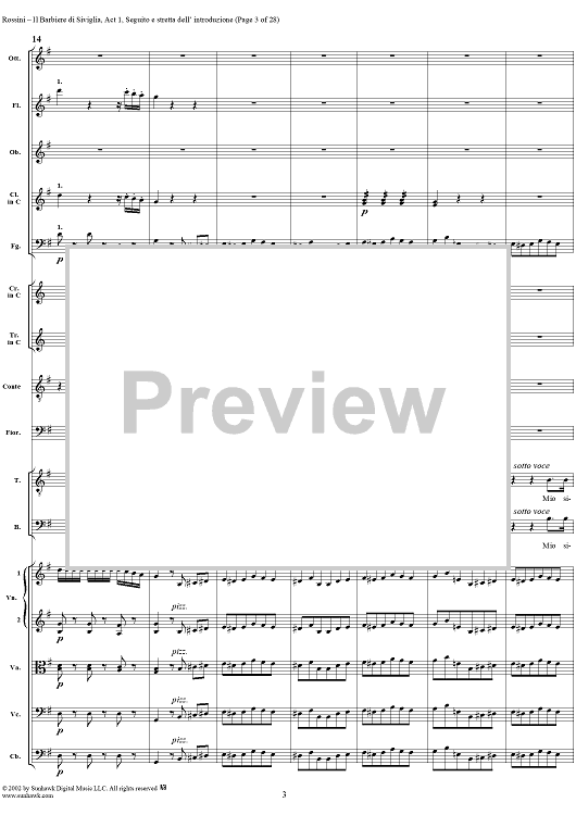 Digital Sheet Music for Seguito e Stretta dell' Introduzione: Mille grazie, No. 3 from "Il Barbiere di Siviglia" - Full Score by Gioachino Rossini scored for Voice and Orchestra; id:278804