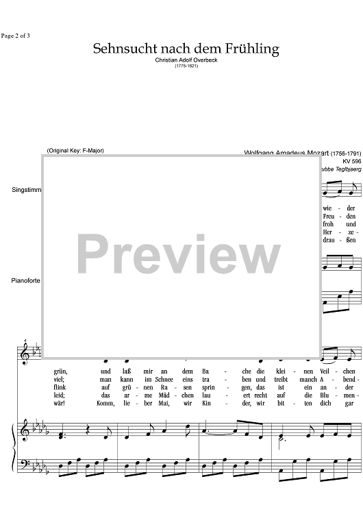 "Sehnsucht nach dem Frühling KV596" Sheet Music by Wolfgang Amadeus Mozart